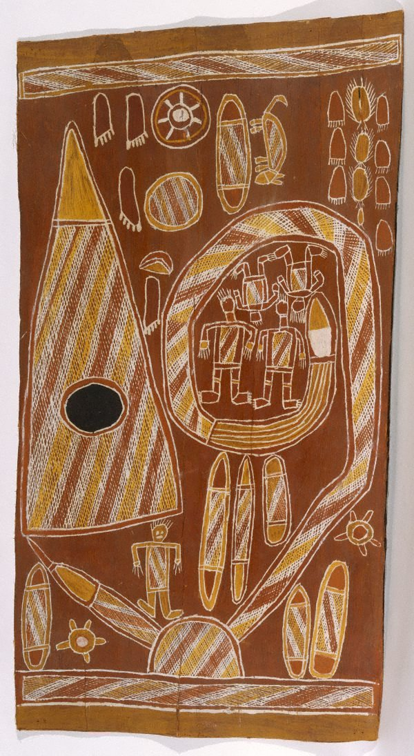 Australia alberga una enorme diversidad de comunidades indígenas, cada una con una relación particular con el territorio, la visualidad y el tiempo. En la tradición aborigen, el arte es una forma de conocimiento integrada, donde pintar, cantar, contar historias y realizar rituales son acciones equivalentes para preservar y actualizar la memoria ancestral. Esta memoria se organiza en torno all Dreaming (o Tjukurpa, Ngarranggarni, entre otros términos de lenguas locales), una compleja red de narrativas cosmogónicas que vinculan los ancestros míticos con los accidentes geográficos y las prácticas sociales actuales. En este marco, cada comunidad actúa como depositaria y gestora de determinados motivos, símbolos y formas de conocimiento visual, cuyo uso está regulado por protocolos de transmisión intergeneracional, edad, género y linajes. Las imágenes no son de libre acceso: están ligadas a derechos ceremoniales y responsabilidades sociales. Así, la producción artística popular no puede disociarse de la estructura epistemológica y ética que la sustenta.
