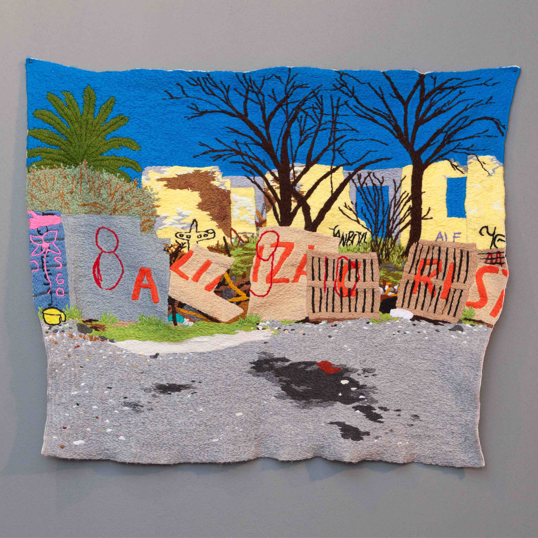 el trabajo práctico de Claudia también se vincula a la exploración de diversas técnicas de lo textil, en especial el bordado con lanas naturales o sintéticas sobre tela Aida y también con el tejido a crochet. Debido a que a nivel histórico éstas han sido prácticas marginadas del sistema artístico, al ser relacionadas con lo doméstico y lo femenino, situándose en un lugar “menor” y “artesanal” en relación a las artes académicas. De modo que gran parte del corpus de su obra se ha centrado en la producción de bordados bidimensionales, objetos textiles e instalaciones que dan cuenta de la vida y el entorno en las poblaciones de Santiago.