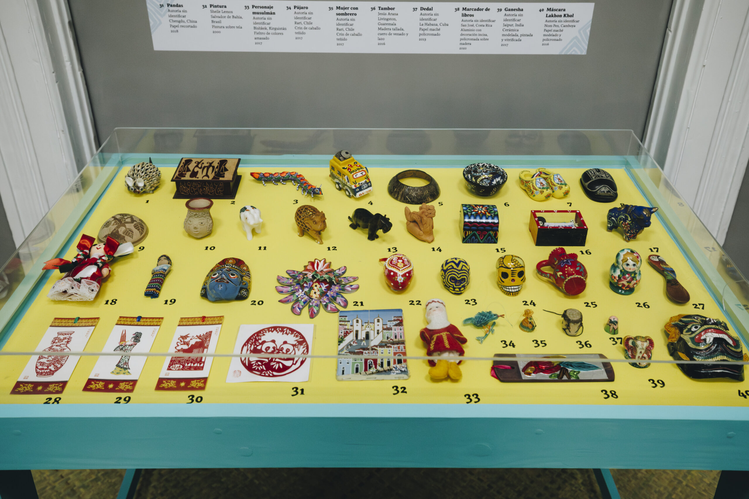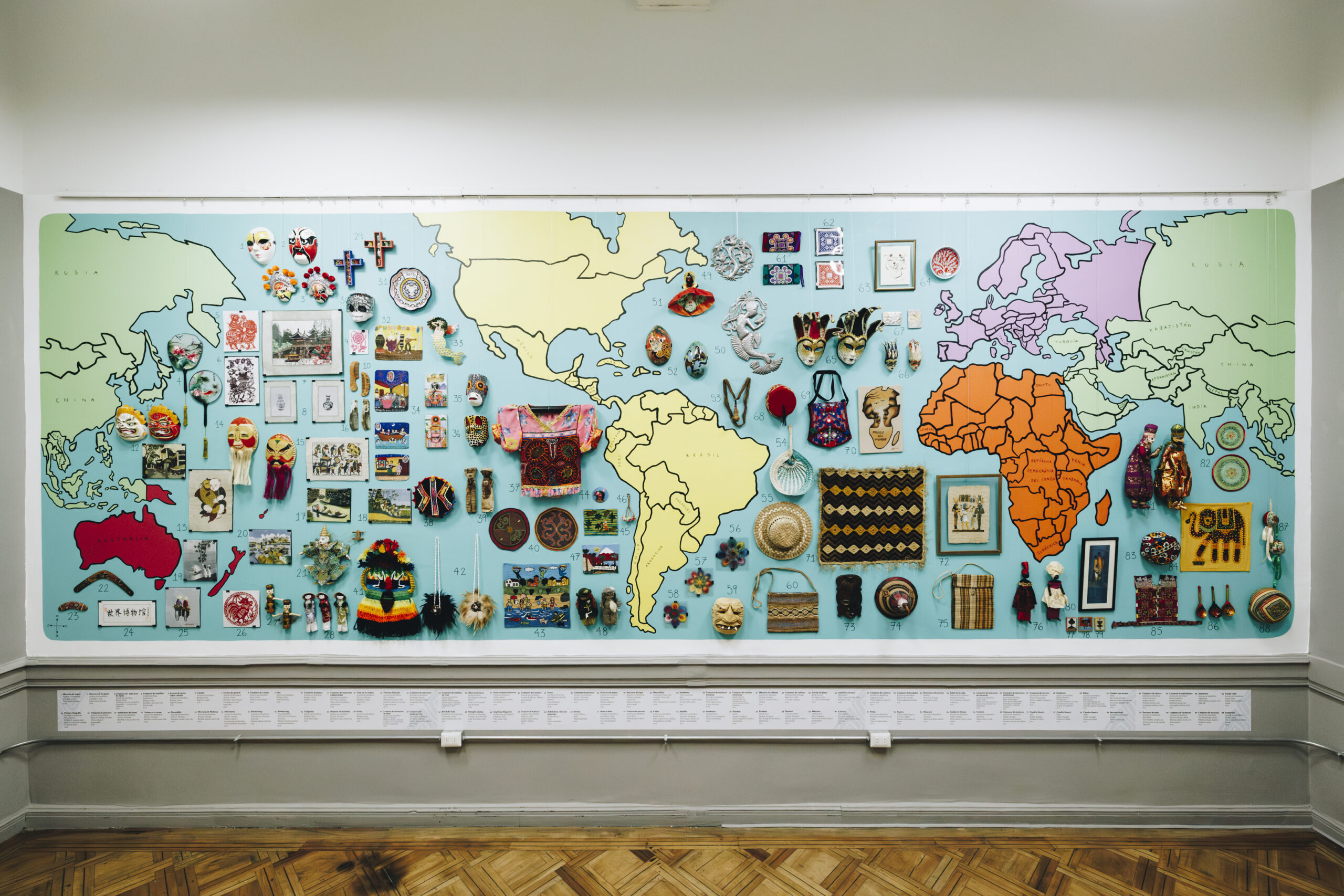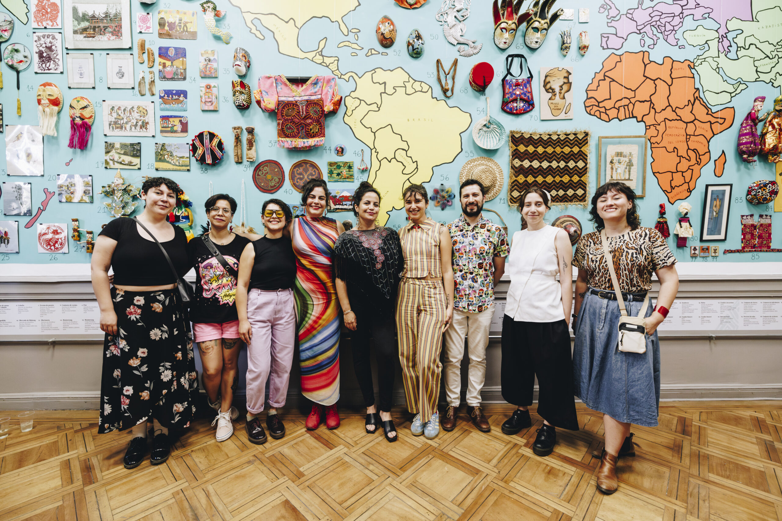 Esta muestra estuvo compuesta por una selección de 150 obras pertenecientes a la colección de artes populares del MDM, proveniente de países como Chile, Guatemala, China, Vietnam, Senegal, Kenia, Kazajistán, Rusia, Argentina, Panamá, Haití, Croacia, Turquía, entre otros. Además, hubo una selección de miniaturas del mundo, un espacio educativo para las infancias, y una muestra dedicada a la indumentaria y a la resistencia Palestina, gracias a la colaboración del colectivo Al Auda y Damas Palestinas.