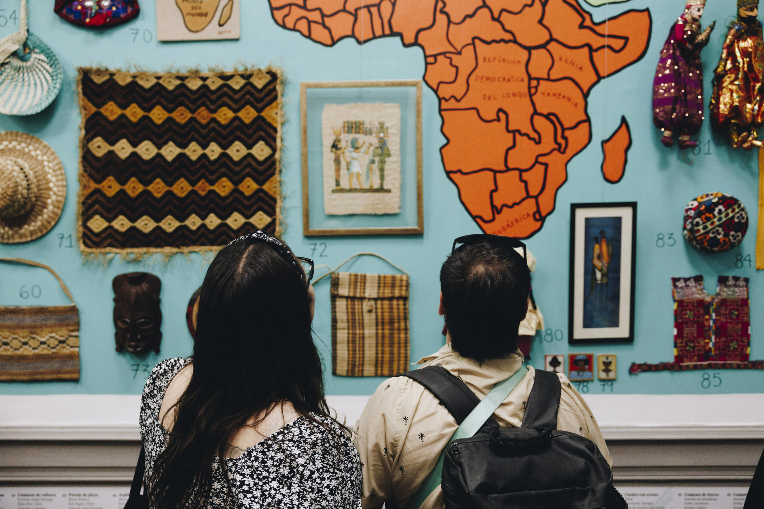 La presente exposición en la Sala de Artes Visuales USACH es una selección de obras pertenecientes a la colección de artes populares del Museo del Mundo, provenientes de diversos territorios repartidos en los cinco continentes. Estos han sido reunidos por mujeres que iniciamos este proyecto, con el propósito de aprender sobre las culturas desde un enfoque descentralizador, enfatizando en el carácter migrante de sus prácticas y utilizando medios virtuales como herramienta educativa.