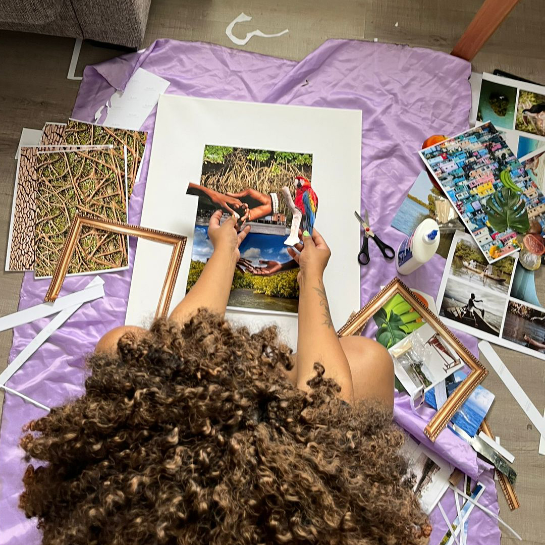 El collage ha sido una técnica en la que Johanna se ha sentido cómoda para expresarse, utilizando los fragmentos del papel como mecanismos para narrar diversas historias que se vinculan a la estética afrodescendiente, además de utilizar imágenes de su propio archivo que ha ido construyendo de forma paralela ante la ausencia de personas racializadas en las revistas. De modo que este banco visual no sólo le permite dar vida a su obra, sino también es una forma de generar una contranarrativa ante la invisibilización de la cultura negra y potenciar la lucha contra los estereotipos raciales que cosifican y objetualizan a las personas afrodescendientes.